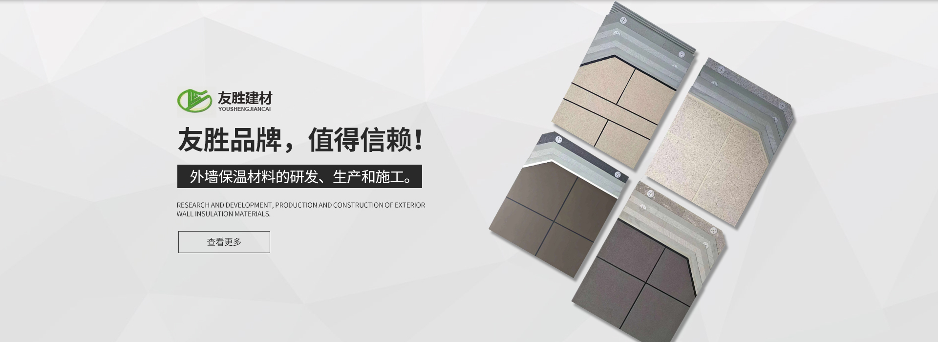 安徽友勝建材科技集團有限公司是一家專業從事建筑施工與節能保溫及裝飾裝修生產、施工企業。企業于2008年從事外墻保溫材料的研發。生產和施工?,F公司旗下擁有(安徽舒然裝飾 工程有限公司)裝飾裝修貳級資質、防水防腐及保溫貳級資質。旗下系列產品有:巖棉板、巖棉復合板、石墨聚苯板、珍珠巖板、勻質板、地坪保溫隔聲板,粘結、抹面及無機輕型材料等。